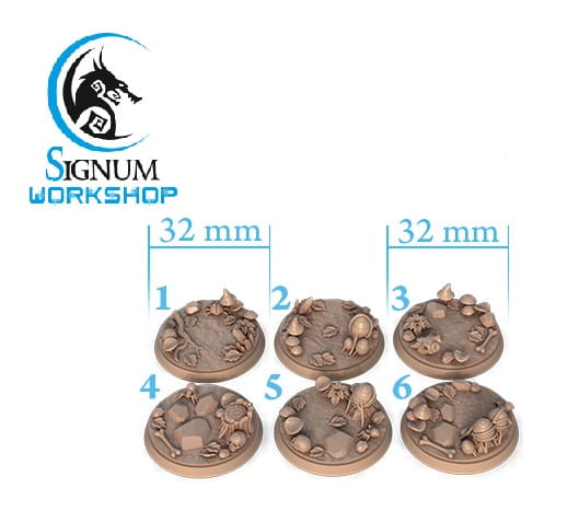 Podstawki w temacie mrocznych elfów, średnica podstawowa 25mm (skala 28mm) - dostępne warianty 32 oraz 40mm (skala 38mm), cena za paczkę 10 okrągłych podstawek, wykonanych z żywicy.