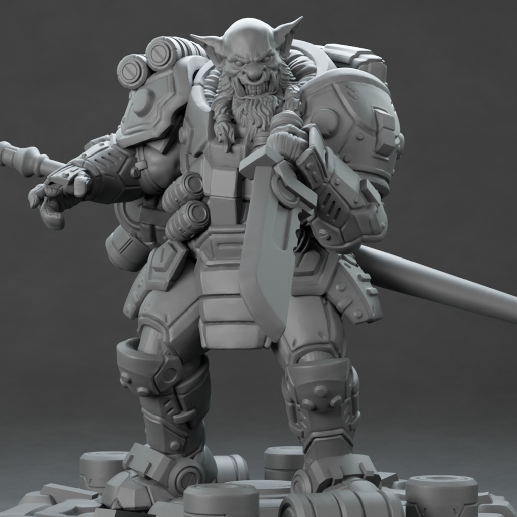 HunterOrcs od Nafarrate. Warianty do wyboru - po wyborze wariantu, obrazek podglądowy zmieni się na wybrany wariant. Wysokość dla skali 32mm: ok. 3,8cm (bez podstawki).